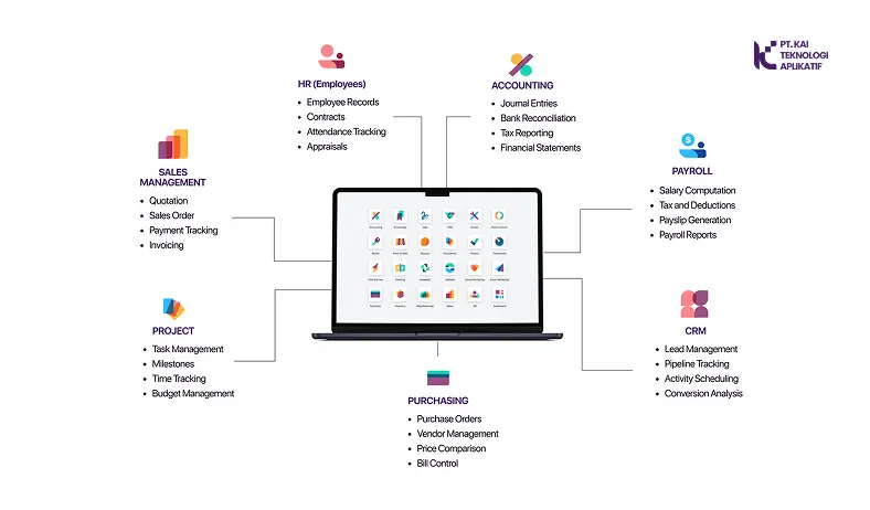 Di Kaitech, kami tidak hanya menginstal Odoo, tapi memastikan sistem ini benar-benar membantu Anda bekerja lebih efisien. Kami memahami proses bisnis, bukan hanya teknologi. Kami bantu dari konsultasi, implementasi, migrasi data, pelatihan, hingga support harian.